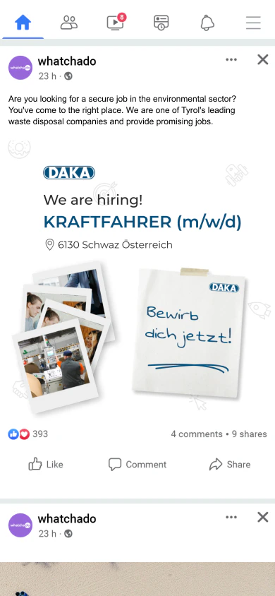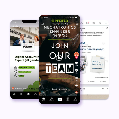 Create dynamic social media recruiting campaigns in just a few minutes with the whatchado Ad Manager